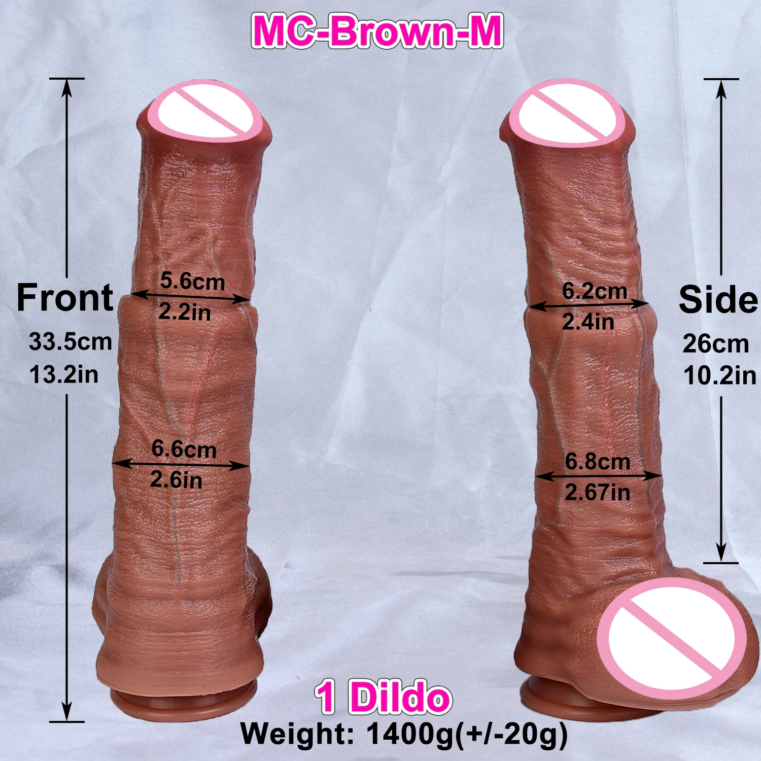 • Medium: 33.5 cm (13.2 in) overall, 26 cm (10.2 in) insertable, max width 6.8 cm (2.67 in)